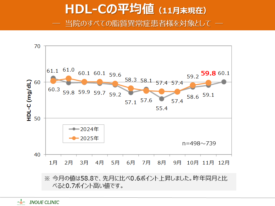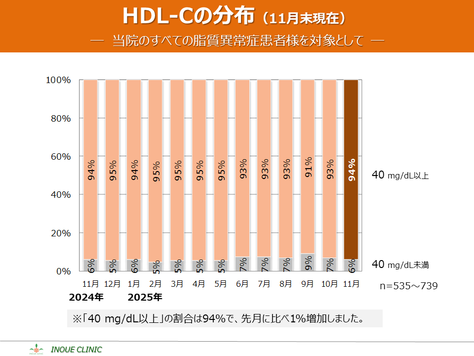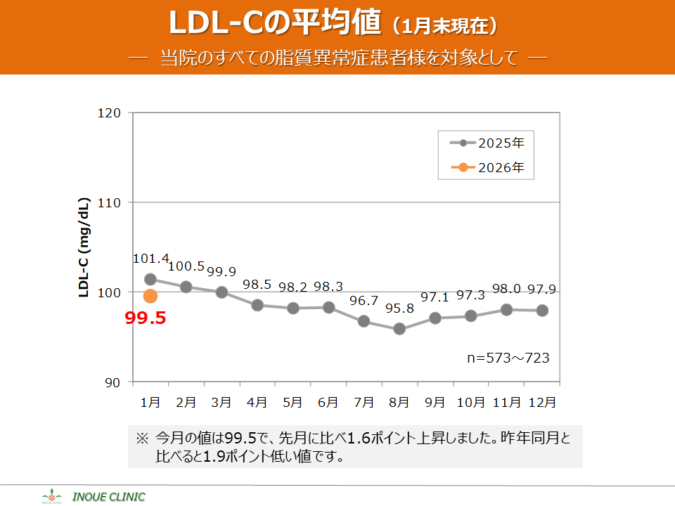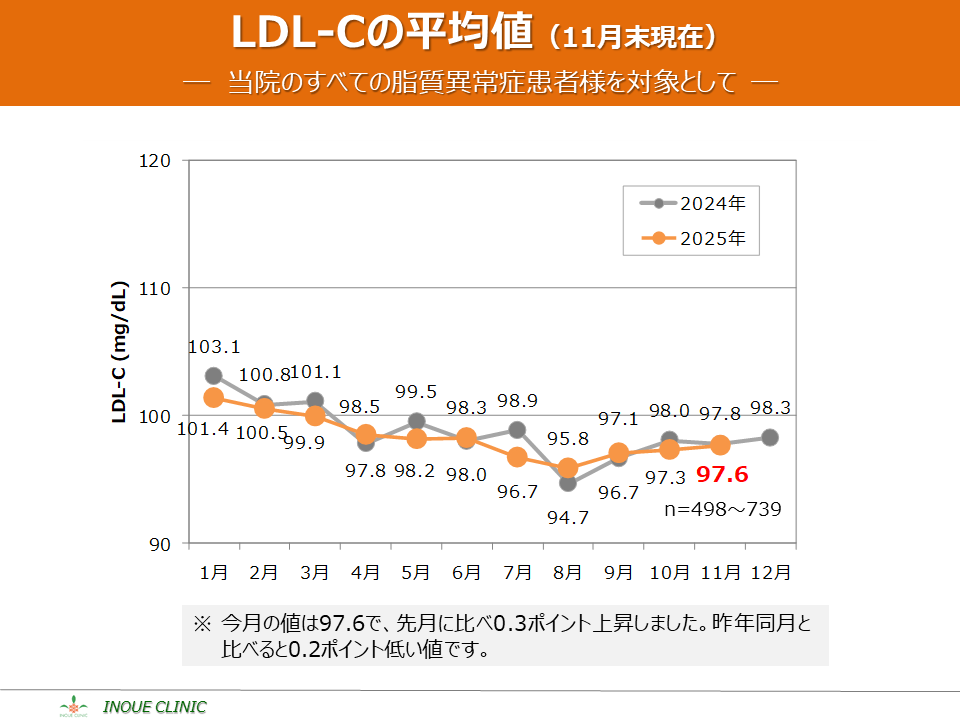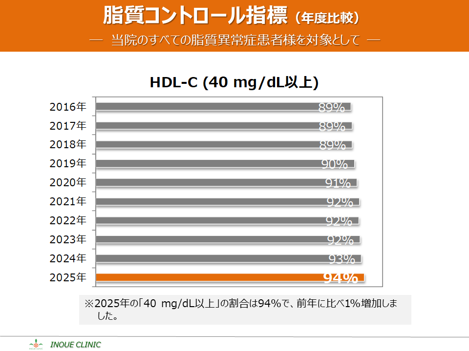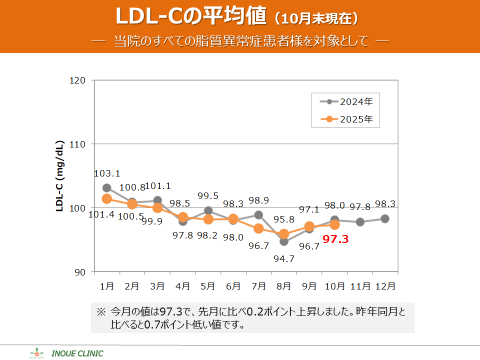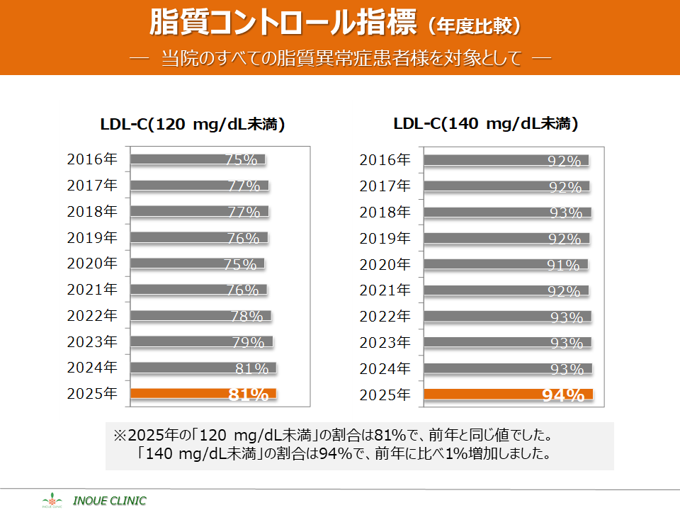 脂質異常症(LDL-C、HDL-C) 画像をクリックすると拡大表示します LDL-C、HDL-Cとは? LDL-Cの平均値 LDL-Cの分布 HDL-Cの平均値 HDL-Cの分布 脂質コントロール指標(LDL-C、年度比較) 脂質コントロール指標(HDL-C、年度比較)