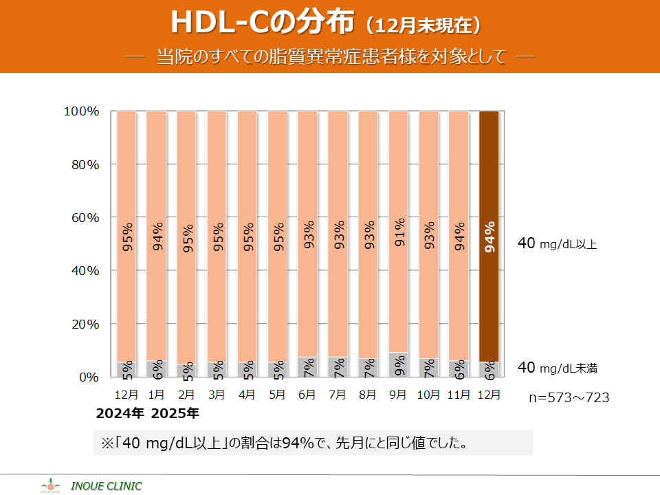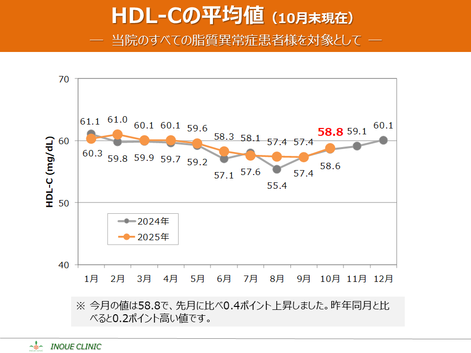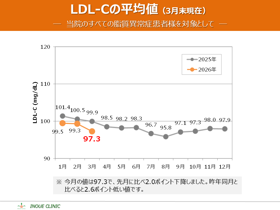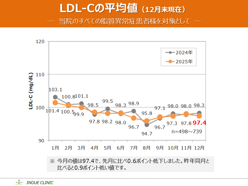 脂質異常症(LDL-C、HDL-C) 画像をクリックすると拡大表示します LDL-C、HDL-Cとは? LDL-Cの平均値 LDL-Cの分布 HDL-Cの平均値 HDL-Cの分布 脂質コントロール指標(LDL-C、年度比較) 脂質コントロール指標(HDL-C、年度比較)